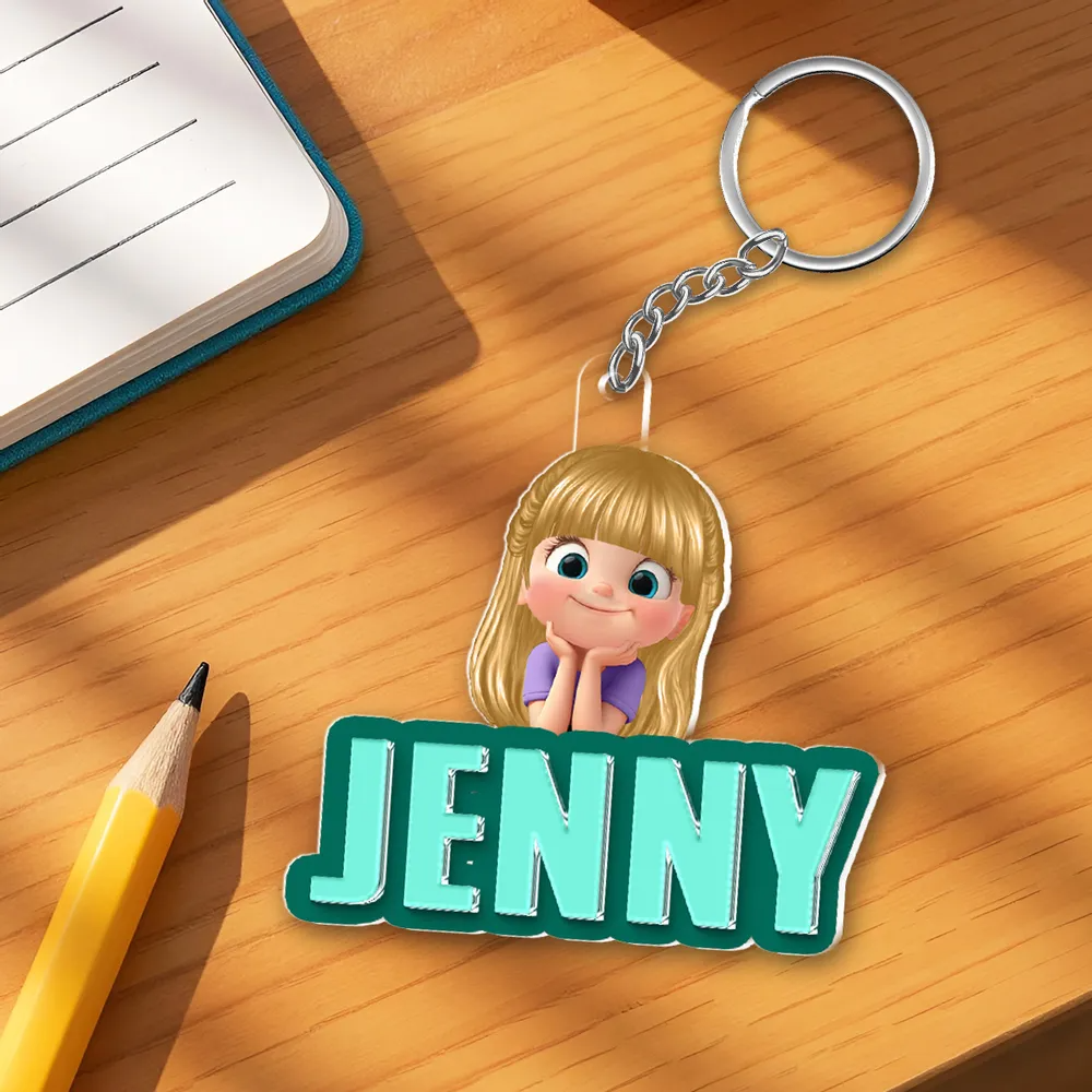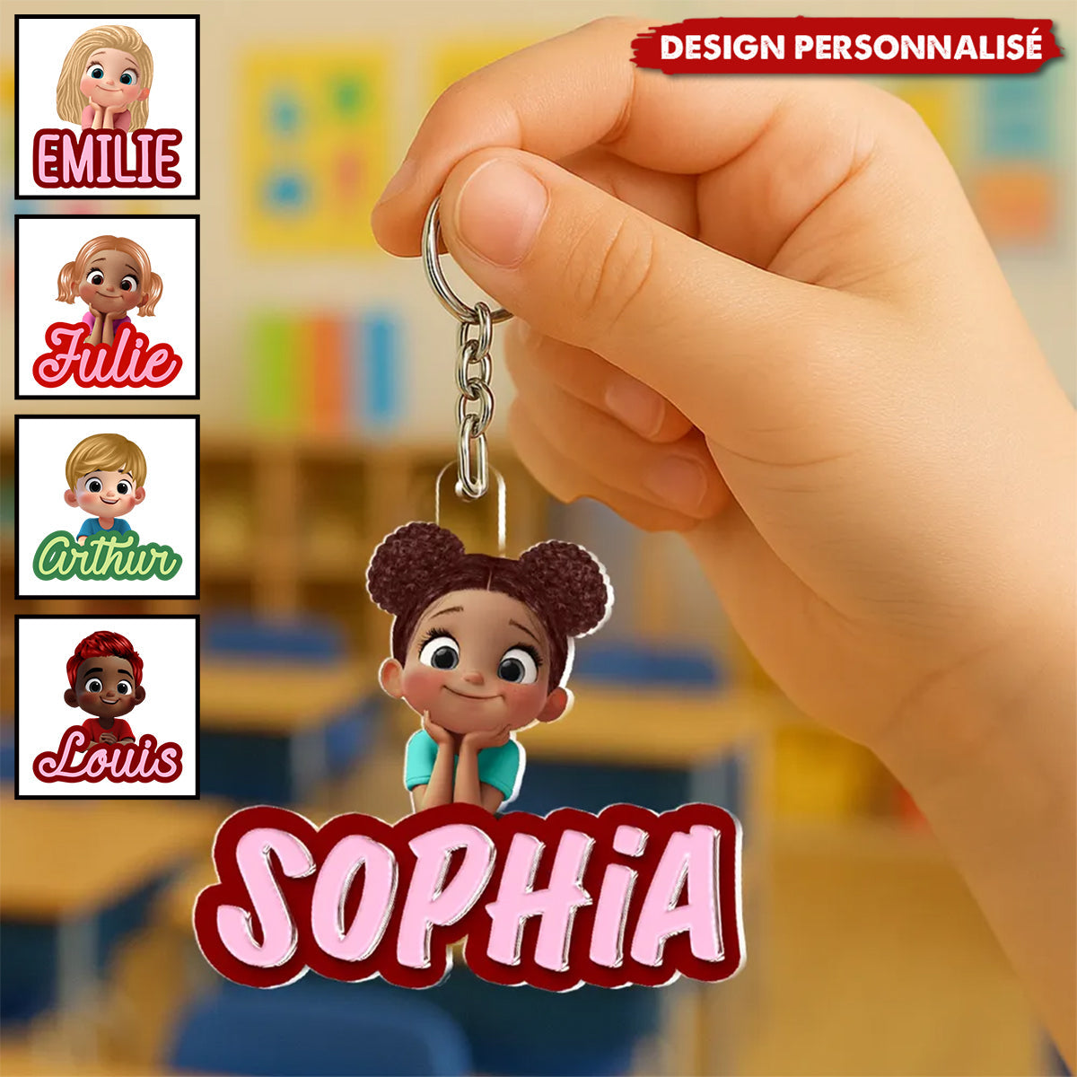 Porte-Clés Personnalisé pour Enfant – Prénom et Personnage Cartoon en Acrylique