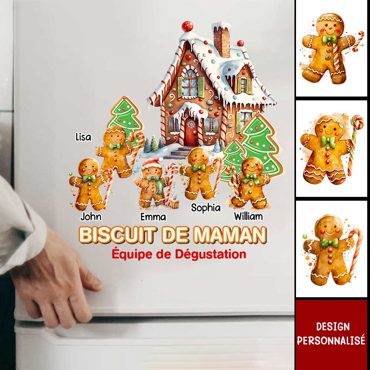 Ajoutez une touche chaleureuse et amusante à votre cuisine avec notre autocollant personnalisé Biscuit! 🍪✨ Conçu pour toute la famille, ce sticker représente une maison en pain d’épice entourée d’adorables personnages biscuits, chacun pouvant être personnalisé avec le prénom de votre choix.