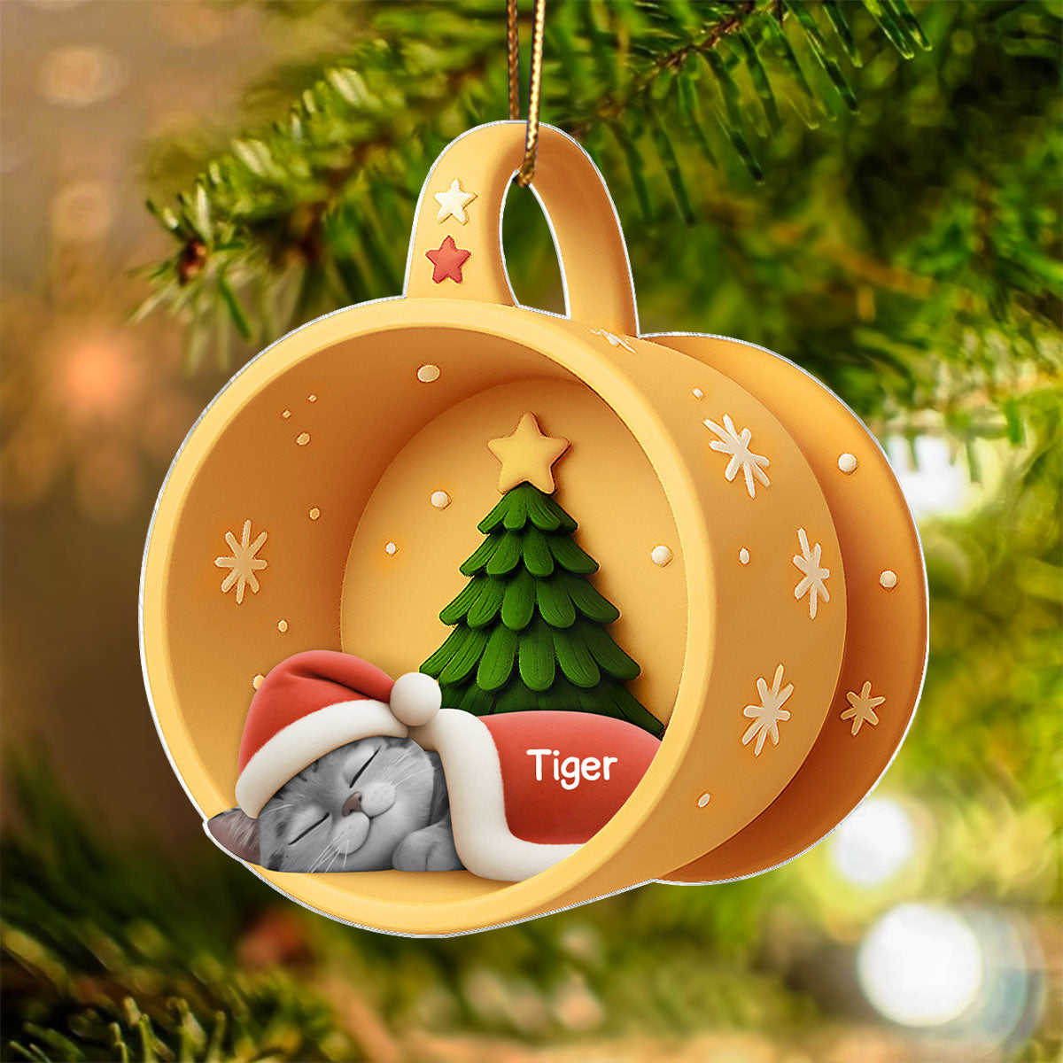 Ajoutez une touche de magie à vos décorations de Noël avec cet ornement acrylique personnalisé représentant votre animal de compagnie adoré. ce design mignon avec un sapin de Noël et une couverture de neige est parfait pour ajouter un souvenir spécial à votre arbre de Noël.