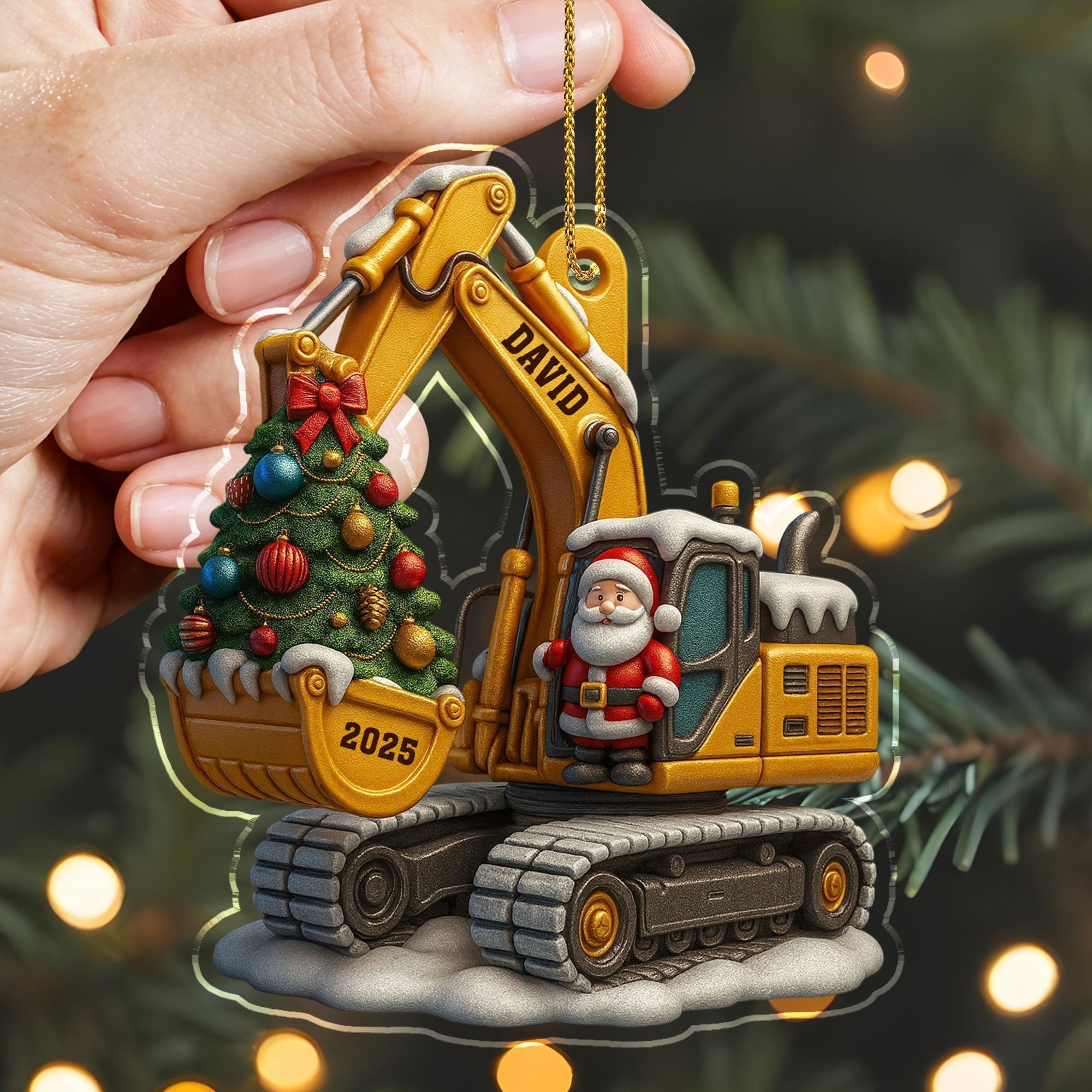 Décoration de Noël en Acrylique Personnalisée - Pelleteuse avec Sapin et Père Noël