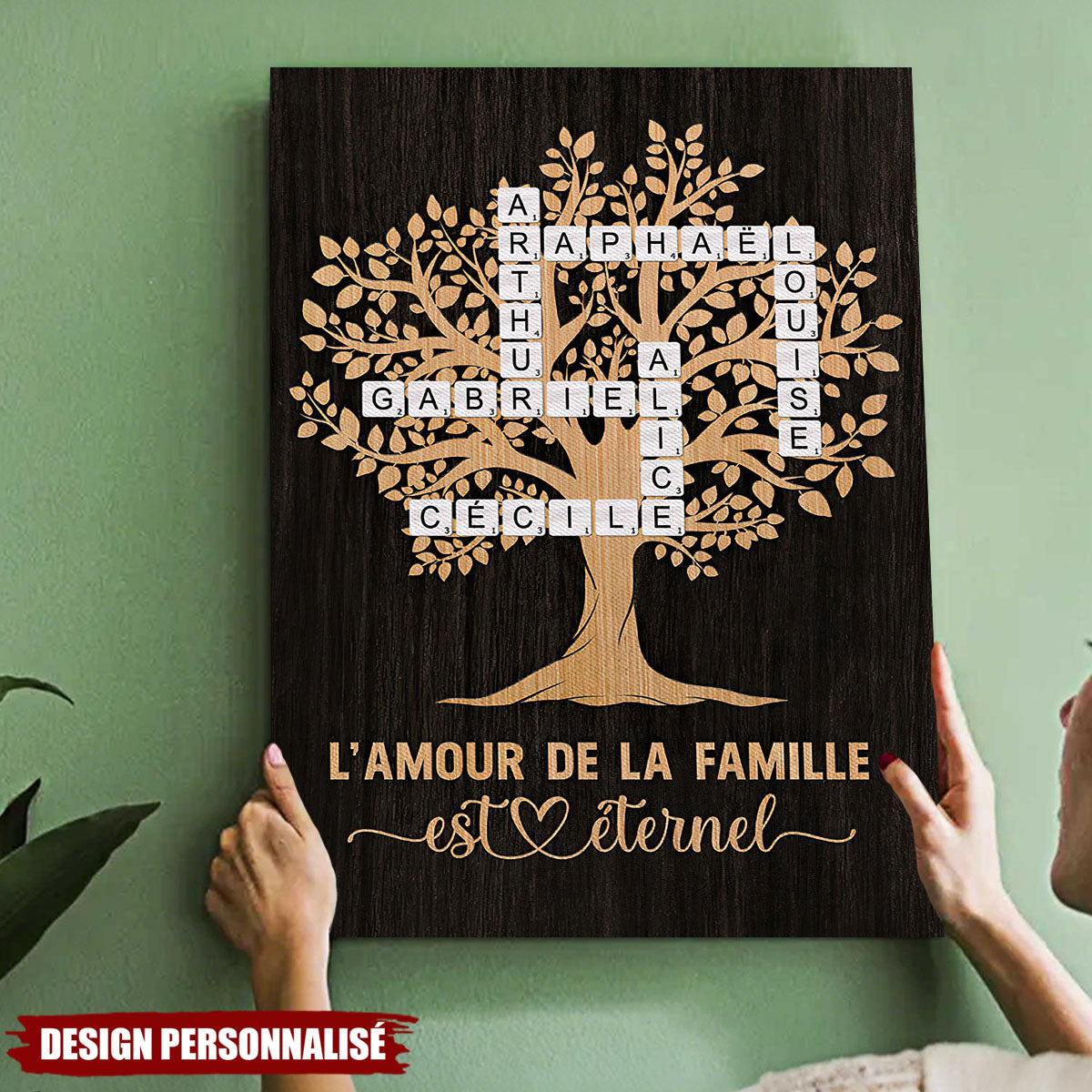 Cette affiche arbre généalogique personnalisée, ornée de noms en style mots croisés, est un hommage chaleureux à l’amour familial. Parfaite pour un salon, un couloir ou comme cadeau touchant pour les parents et grands-parents.