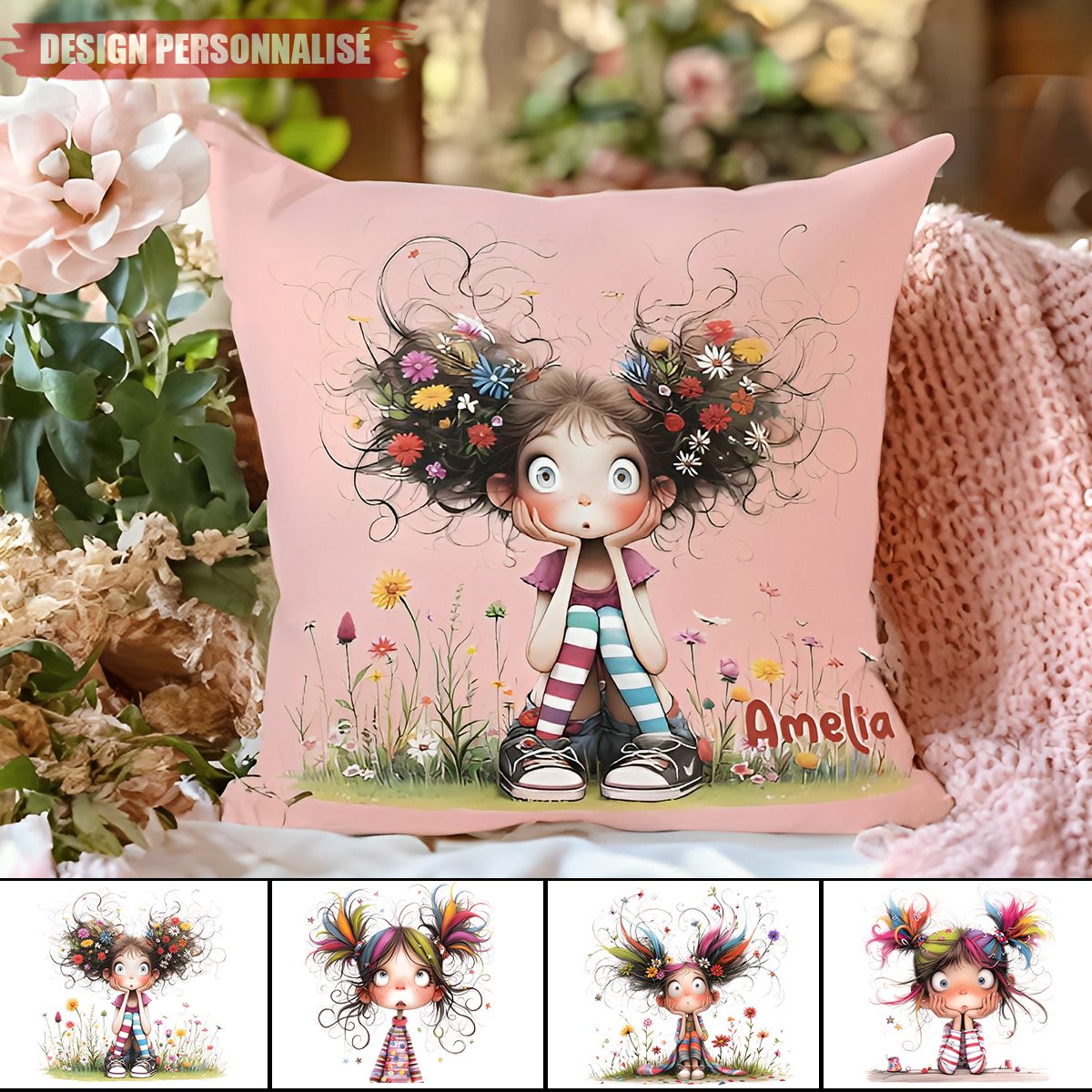 Ajoutez une touche de fantaisie et de tendresse à votre intérieur avec ce coussin personnalisé illustrant une adorable petite fille en style dessin animé. Chaque housse est imprimée avec des couleurs éclatantes et des détails raffinés, parfaits pour illuminer une chambre d’enfant, un salon ou une chambre à coucher.