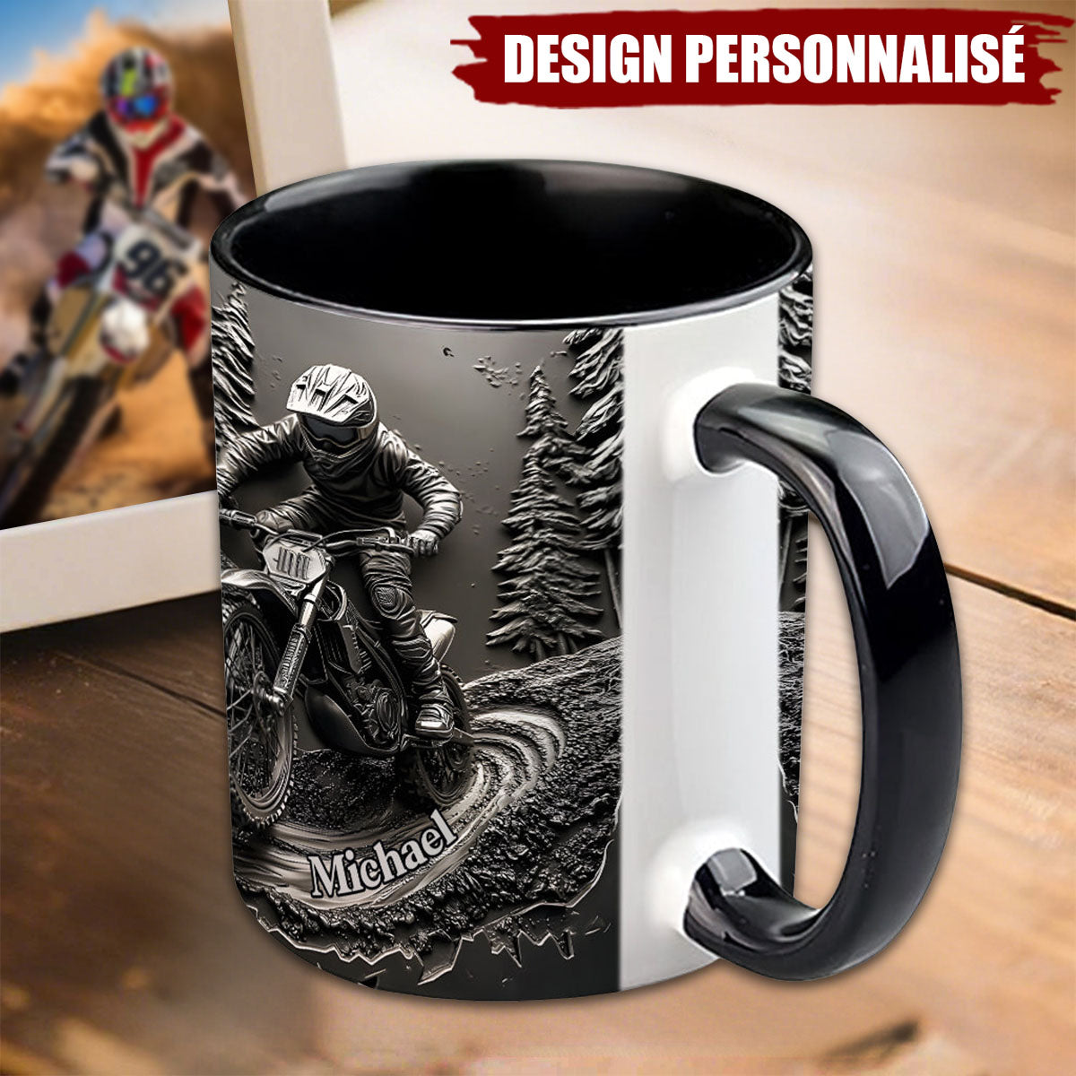 Offrez une tasse unique à tout amateur de motocross ! Ce mug personnalisé affiche un design 3D impressionnant d’un motard en pleine action, avec la possibilité d’ajouter un prénom. Fabriqué avec soin, il allie style et praticité pour un cadeau mémorable. Parfait pour un anniversaire, Noël ou toute occasion spéciale.