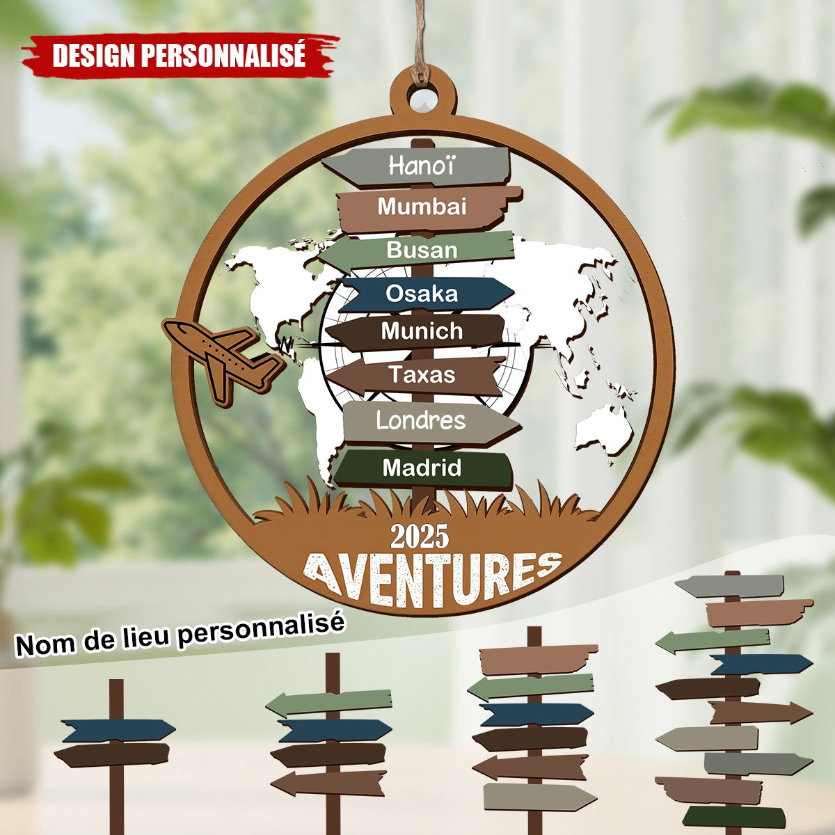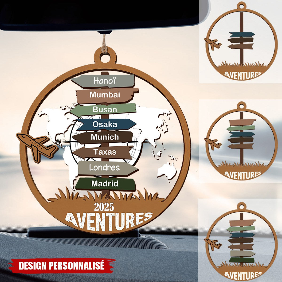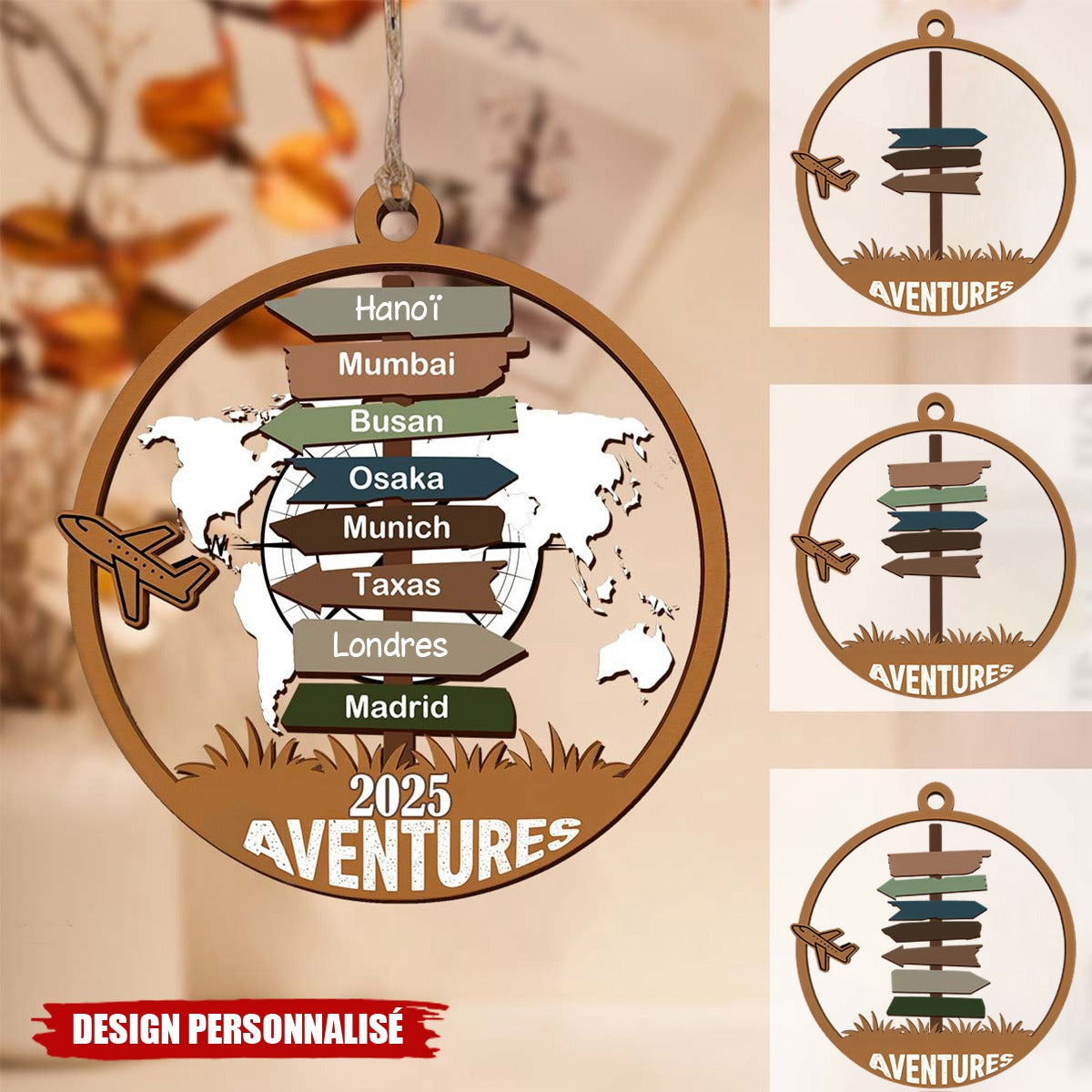 Ce charmant ornement en forme de panneau directionnel met en valeur vos destinations préférées autour du monde – avec une touche personnalisée. Accrochez-le dans votre voiture, sur le sapin de Noël ou même à la maison pour revivre vos aventures de 2025 !