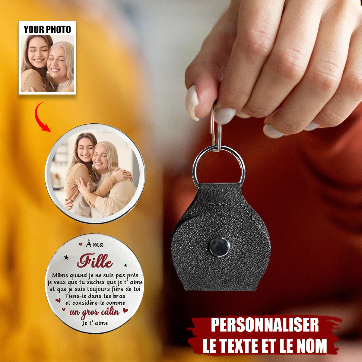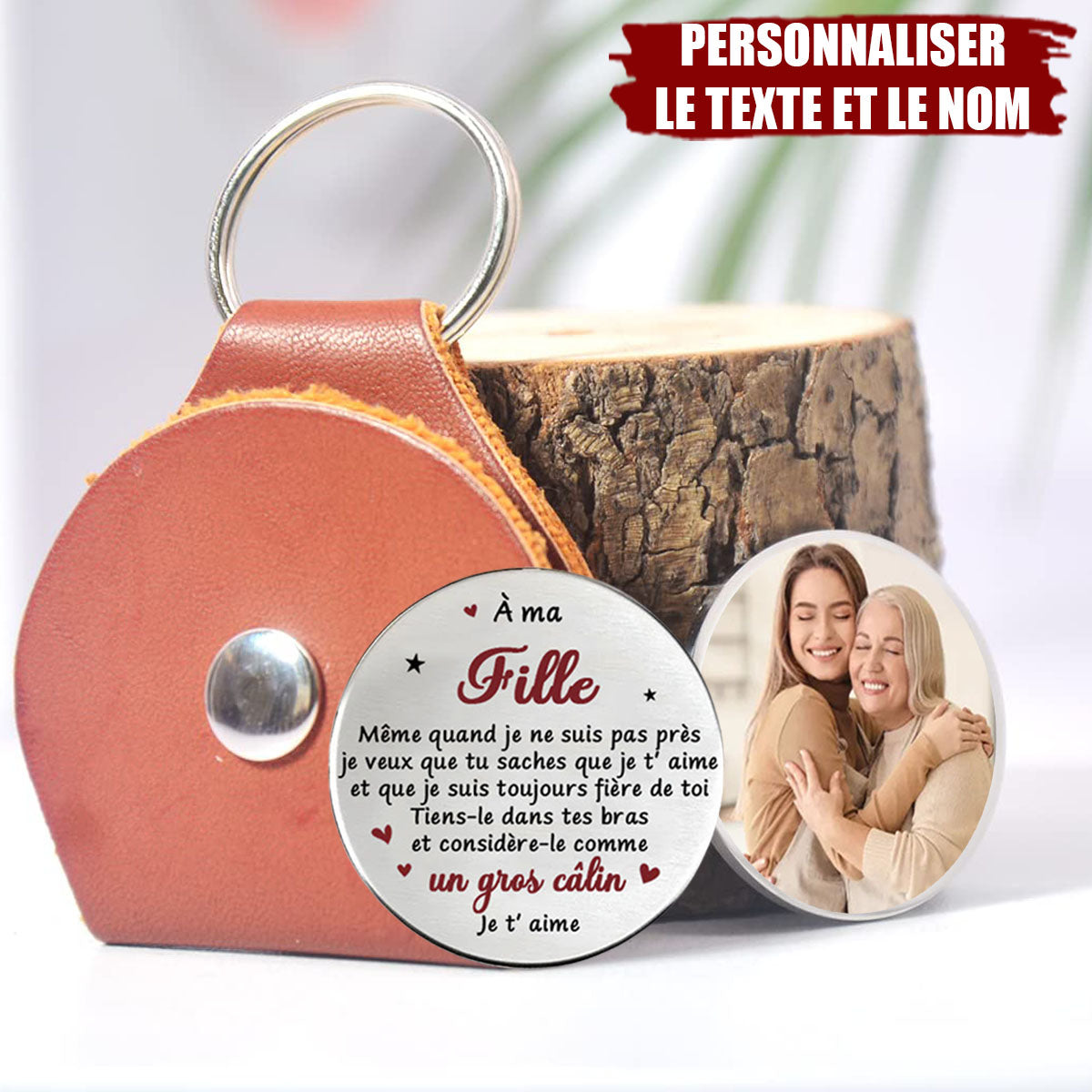 Offrez à votre fille un cadeau rempli d’amour et d’émotion avec ce porte-clés personnalisé. Glissé à l'intérieur d’un étui en cuir élégant, un jeton gravé porte un message tendre :